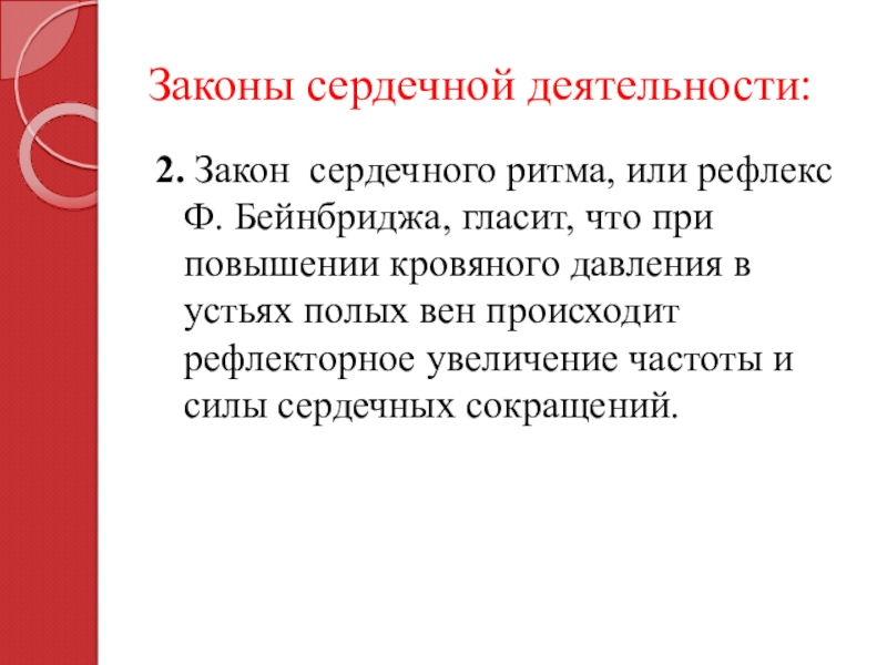 Слайд 302. Закон сердечного ритма, или рефлекс Ф. Бейнбриджа, гласит, что при
