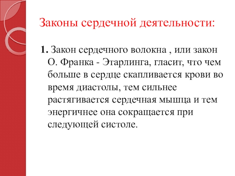 Слайд 29Законы сердечной деятельности: