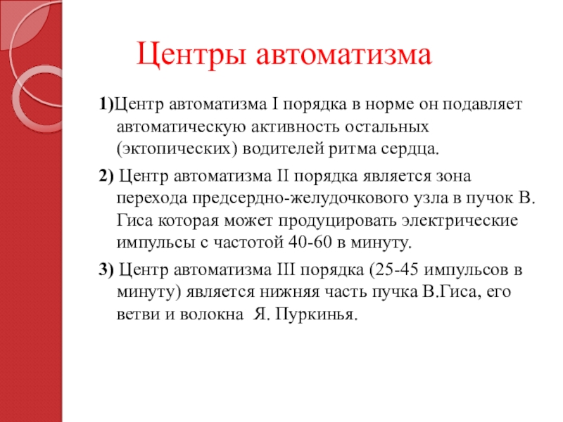 Слайд 13 Центры автоматизма
