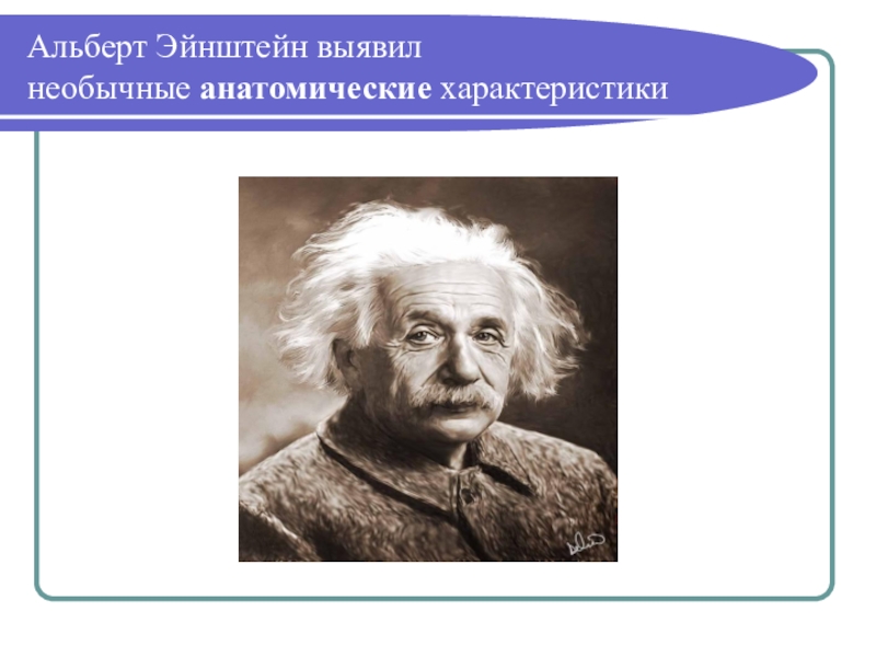Слайд 15Альберт Эйнштейн выявил необычные анатомические характеристики