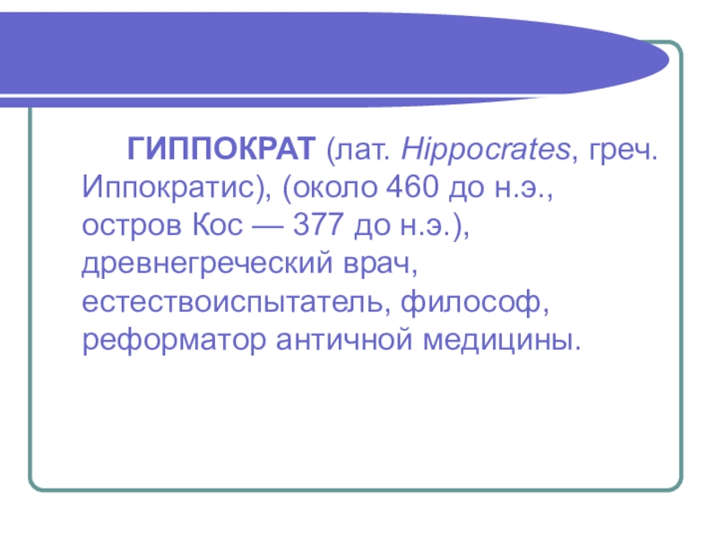 ГИППОКРАТ (лат. Hippocrates, греч. Иппократис), (около 460 до н.э., остров Кос — 377