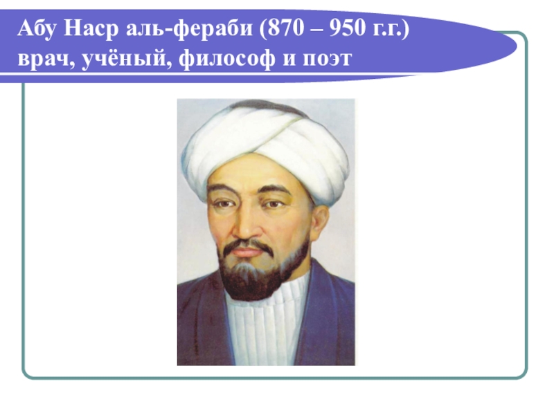 Слайд 10Абу Наср аль-фераби (870 – 950 г.г.)