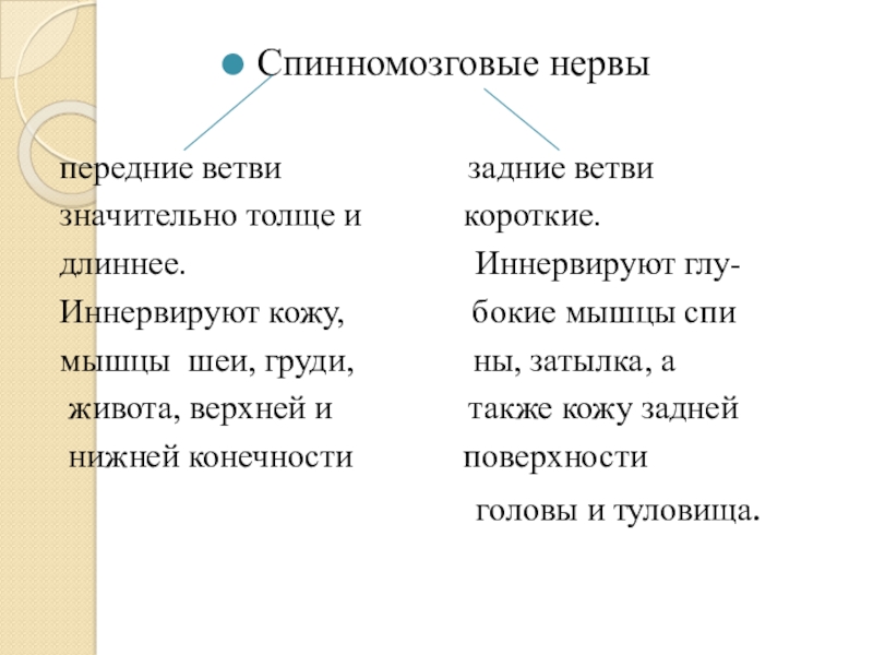 Презентация, доклад по анатомии на тему Спинномозговые нервы (9-10 класс)