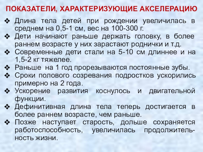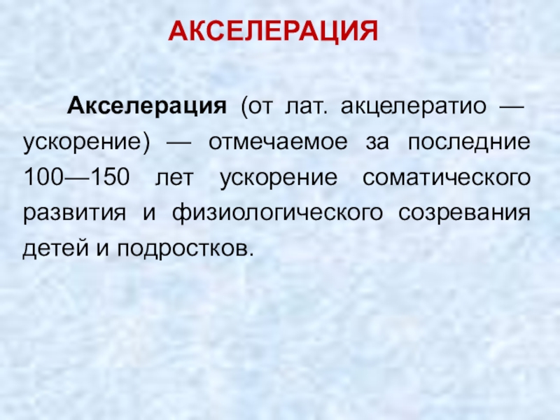 Акселерация (от лат. акцелератио — ускорение) — отмечаемое за последние 100—150