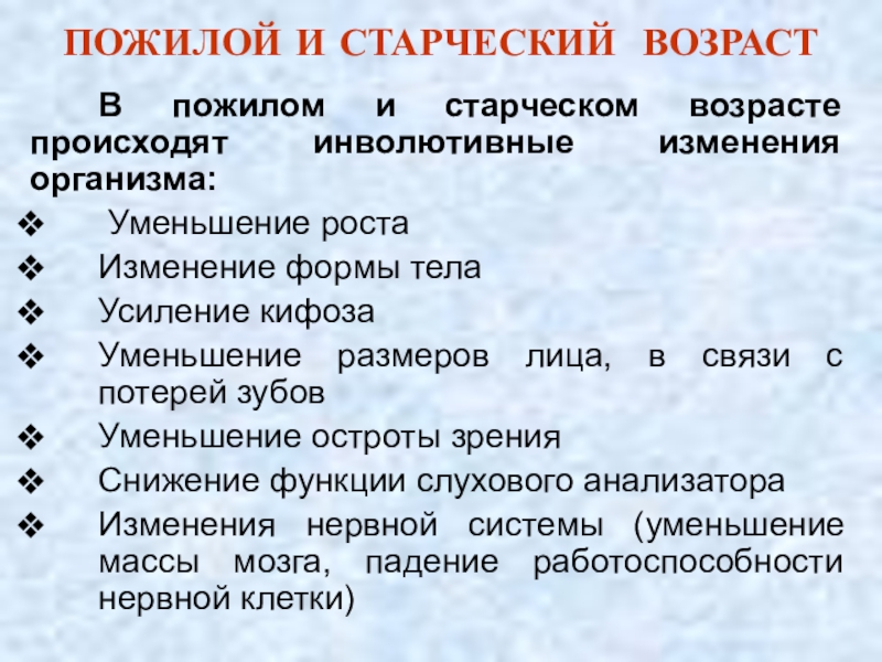 Слайд 27В пожилом и старческом возрасте происходят инволютивные изменения организма: