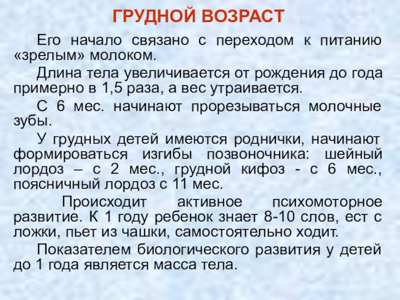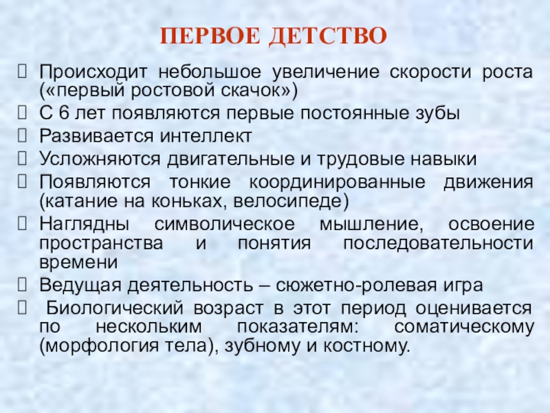 Биологический возраст в этот период оценивается по нескольким показателям: соматическому (морфология тела), зубному и костному.