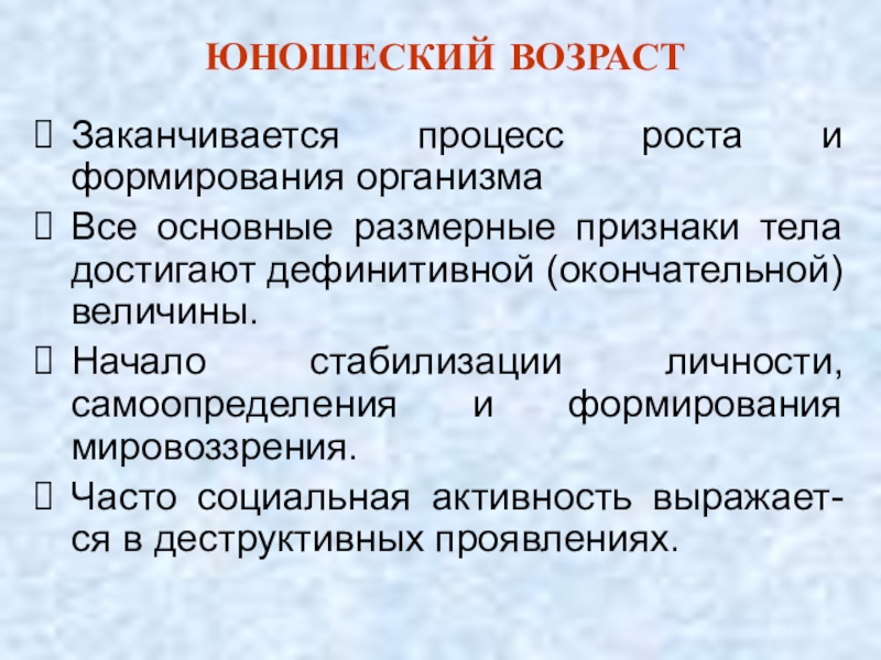 Слайд 25ЮНОШЕСКИЙ ВОЗРАСТ