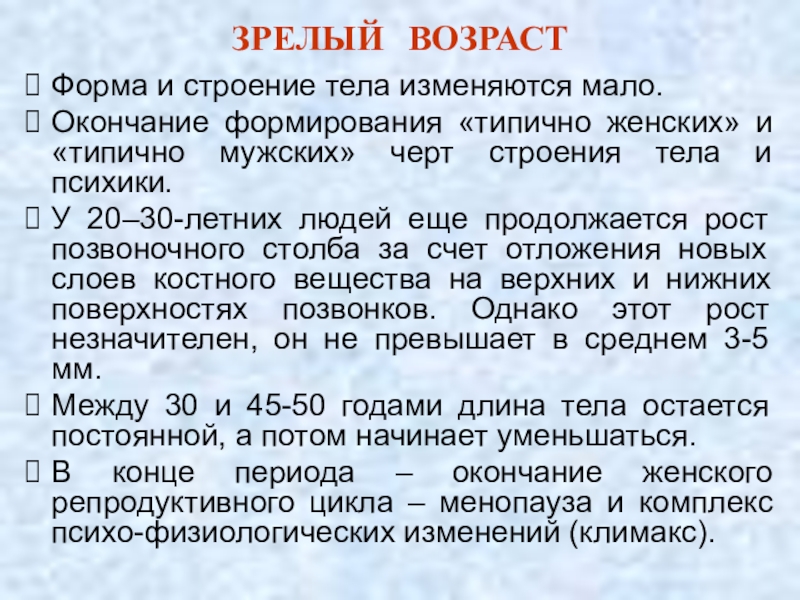 Между 30 и 45-50 годами длина тела остается постоянной, а потом начинает уменьшаться.