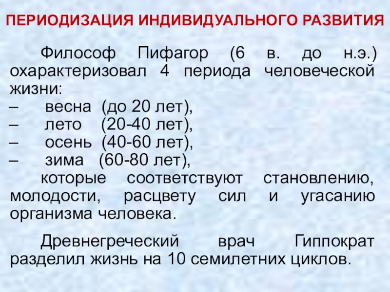 ПЕРИОДИЗАЦИЯ ИНДИВИДУАЛЬНОГО РАЗВИТИЯ