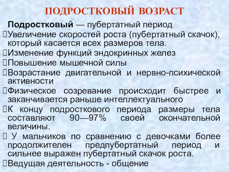 ПОДРОСТКОВЫЙ ВОЗРАСТ