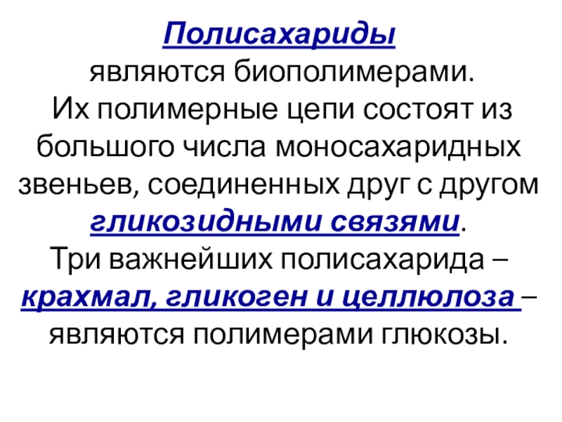 Три важнейших полисахарида – крахмал, гликоген и целлюлоза – являются полимерами глюкозы.
