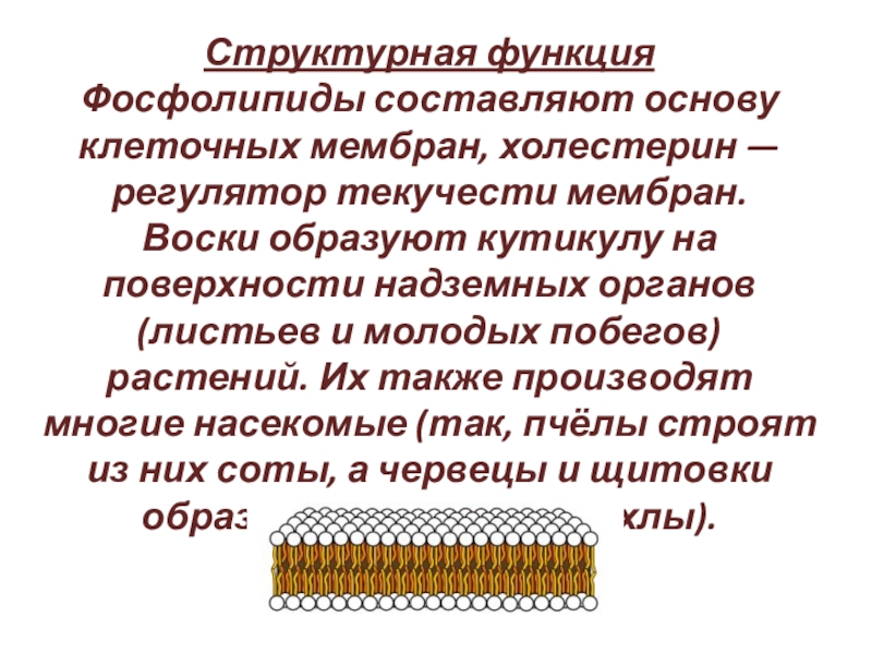 Фосфолипиды составляют основу клеточных мембран, холестерин — регулятор текучести мембран.