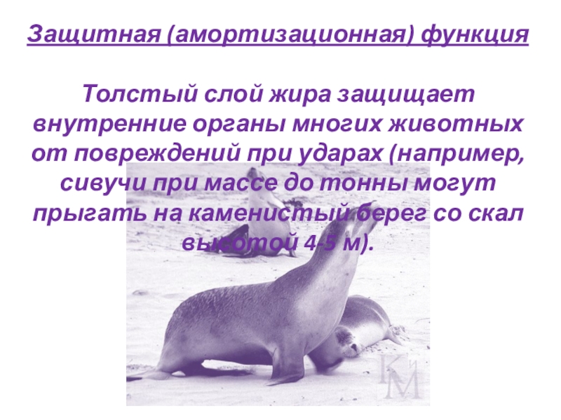от повреждений при ударах (например, сивучи при массе до тонны могут прыгать на каменистый берег со скал высотой 4-5 м).