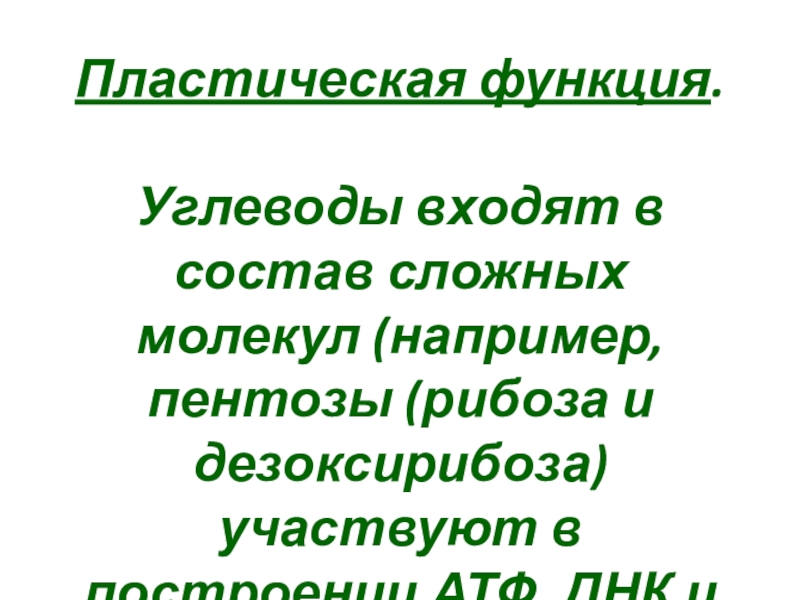 Углеводы входят в состав сложных молекул (например, пентозы (рибоза