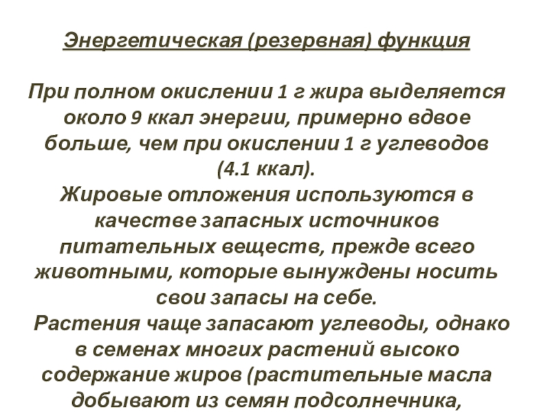 ккал энергии, примерно вдвое больше, чем при окислении 1 г углеводов (4.1 ккал).