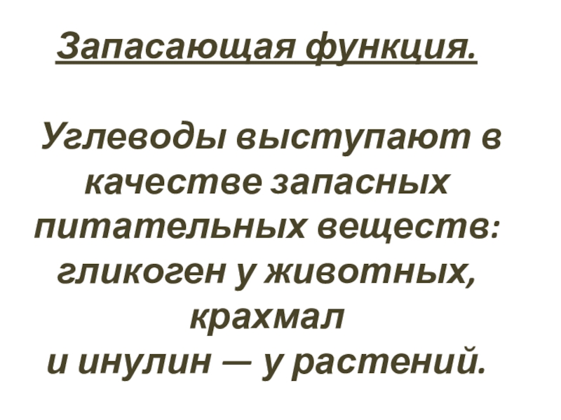 Углеводы выступают в качестве запасных питательных веществ: гликоген у