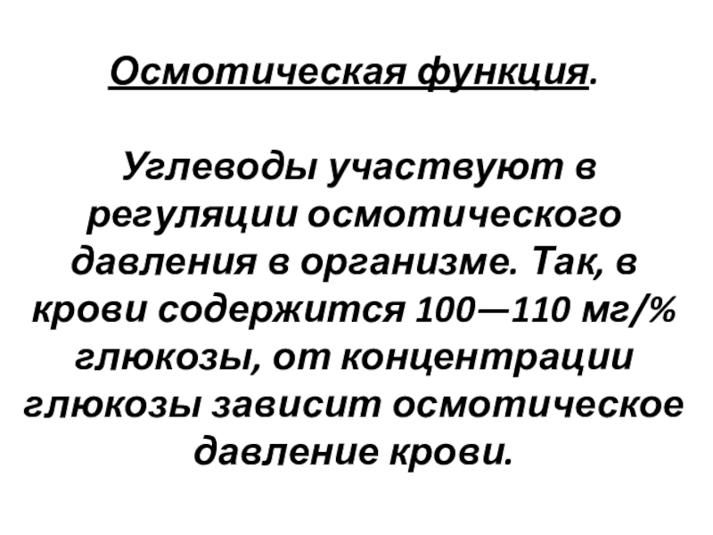 Углеводы участвуют в регуляции осмотического давления в организме. Так,