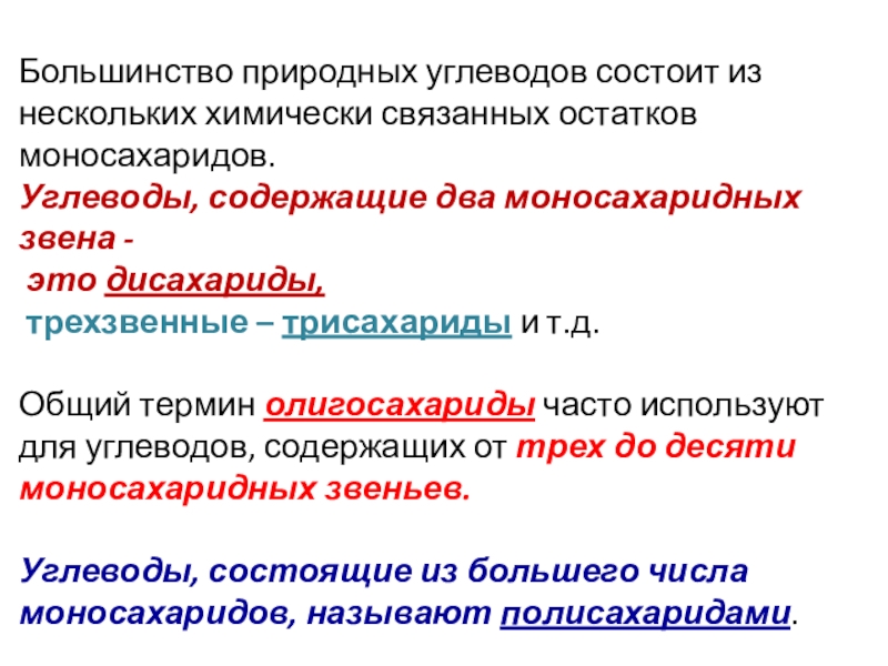 Общий термин олигосахариды часто используют для углеводов, содержащих от трех до десяти моносахаридных звеньев.
