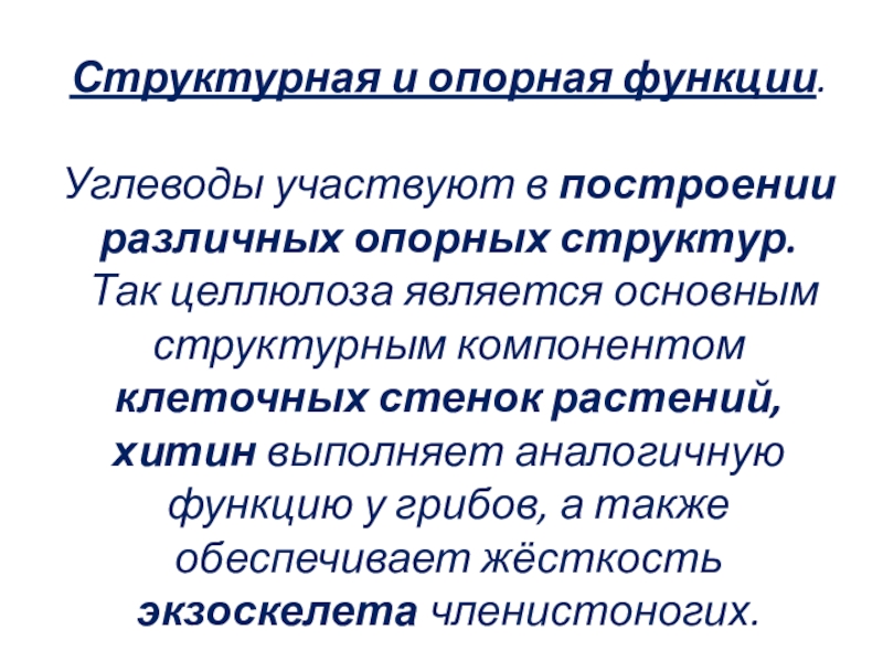 Так целлюлоза является основным структурным компонентом клеточных стенок растений, хитин выполняет аналогичную функцию у грибов, а также обеспечивает жёсткость экзоскелета членистоногих.