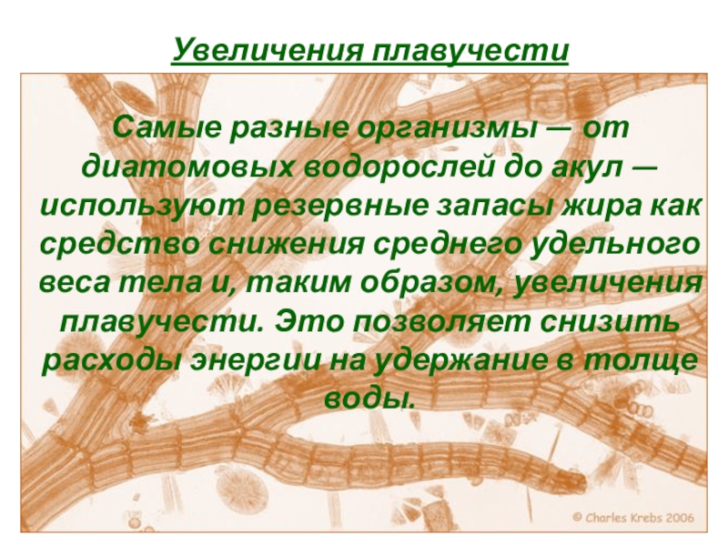 используют резервные запасы жира как средство снижения среднего удельного веса тела и, таким образом, увеличения плавучести. Это позволяет снизить расходы энергии на удержание в толще воды.