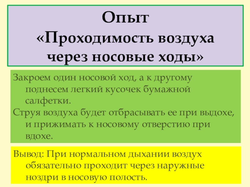 Вывод: При нормальном дыхании воздух обязательно проходит через наружные ноздри в носовую полость.