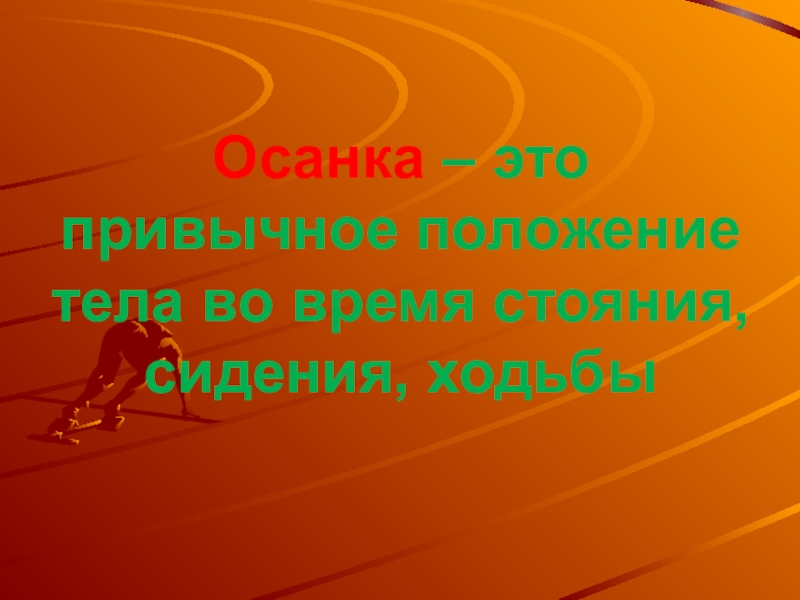 Слайд 9Осанка – это привычное положение тела во время стояния, сидения, ходьбы