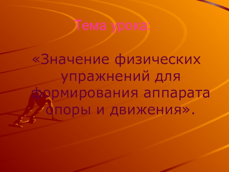 Тема урока:«Значение физических упражнений для формирования аппарата опоры и движения».