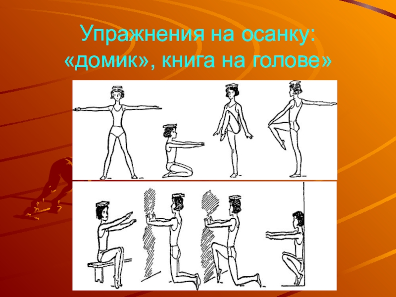 Слайд 20 Упражнения на осанку: «домик», книга на голове»