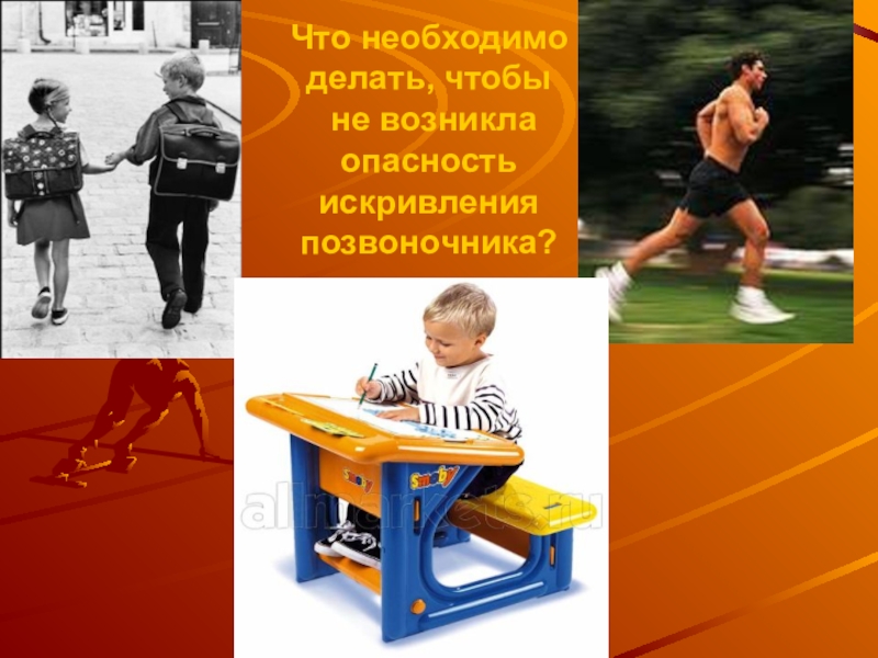 Слайд 21Что необходимо делать, чтобы не возникла опасность искривления позвоночника?