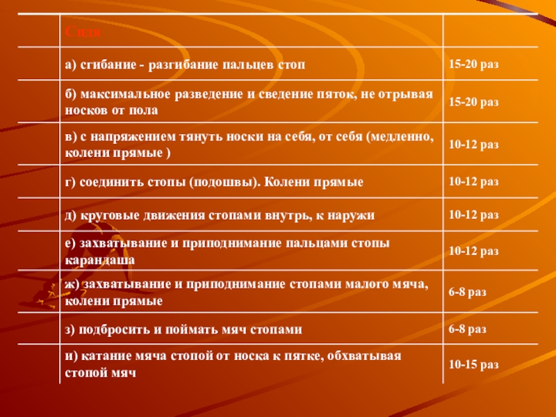 Комплекс упражнений при плоскостопии (лечебная гимнастика)