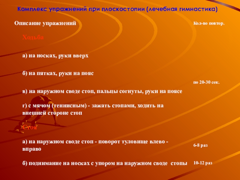 Слайд 30 Комплекс упражнений при плоскостопии (лечебная гимнастика)