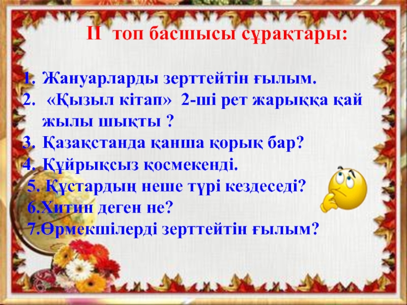 (бұл кезеңде екі топ басшысы өздеріне берілген сұрақтарға жауап береді)