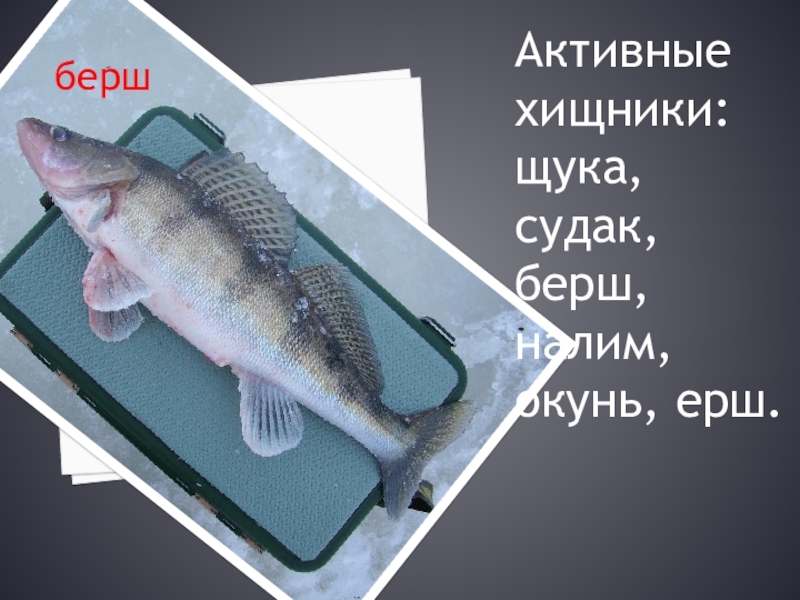 бершАктивные хищники: щука, судак, берш, налим, окунь, ерш.