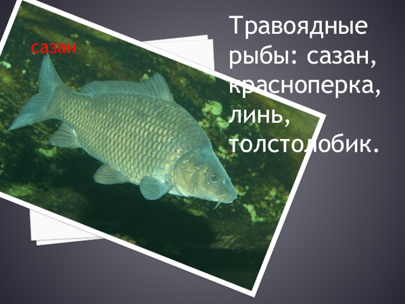 сазанТравоядные рыбы: сазан, красноперка, линь, толстолобик.