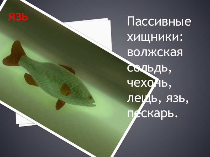язьПассивные хищники: волжская сельдь, чехонь, лещь, язь, пескарь.