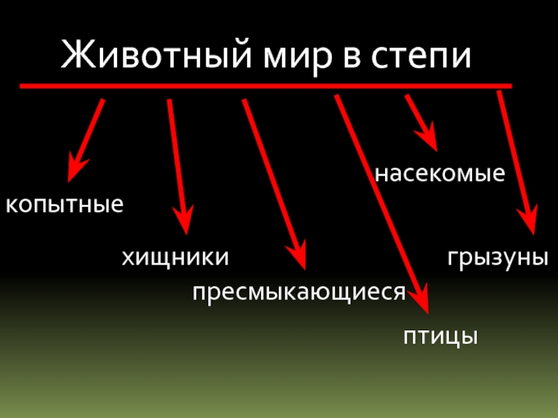 Животный мир в степикопытныехищникипресмыкающиесяптицынасекомыегрызуны