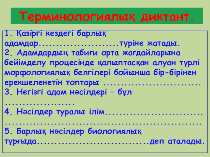 5. Барлық нәсілдер биологиялық тұрғыда................................деп аталады.