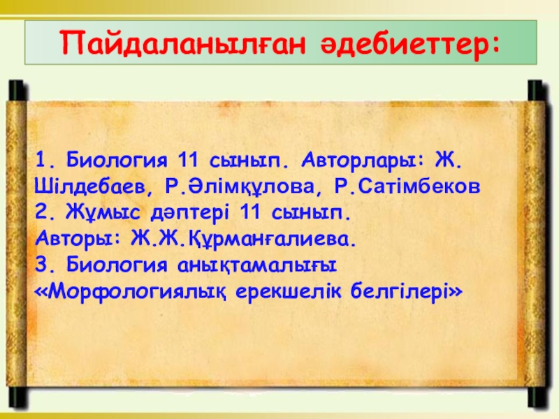 1. Биология 11 сынып. Авторлары: Ж.Шілдебаев, Р.Әлімқұлова, Р.Сатімбеков