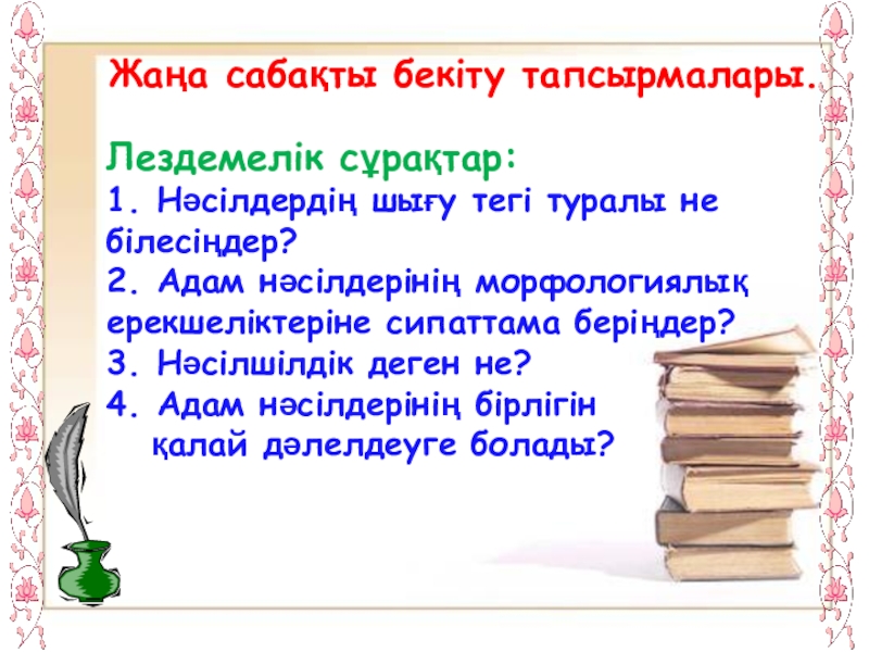 қалыптасқан морфологиялық белгілер ұрпақтан-ұрпаққа беріліп,нығая түскен.