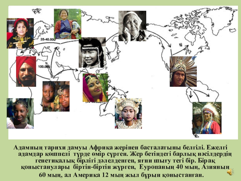 Слайд 20Адамның тарихи дамуы Африка жерінен басталатыны белгілі. Ежелгі адамдар көшпелі түрде