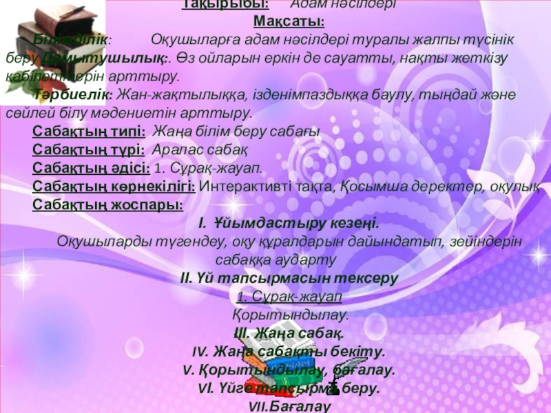 Оқушыларға адам нәсілдері туралы жалпы түсінік беру Дамытушылық:. Өз ойларын еркін де сауатты, нақты жеткізу қабілеттерін арттыру.