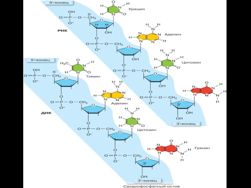 Слайд 10Нуклеотиды соединяются друг с другом в цепь через остаток фосфорной кислоты