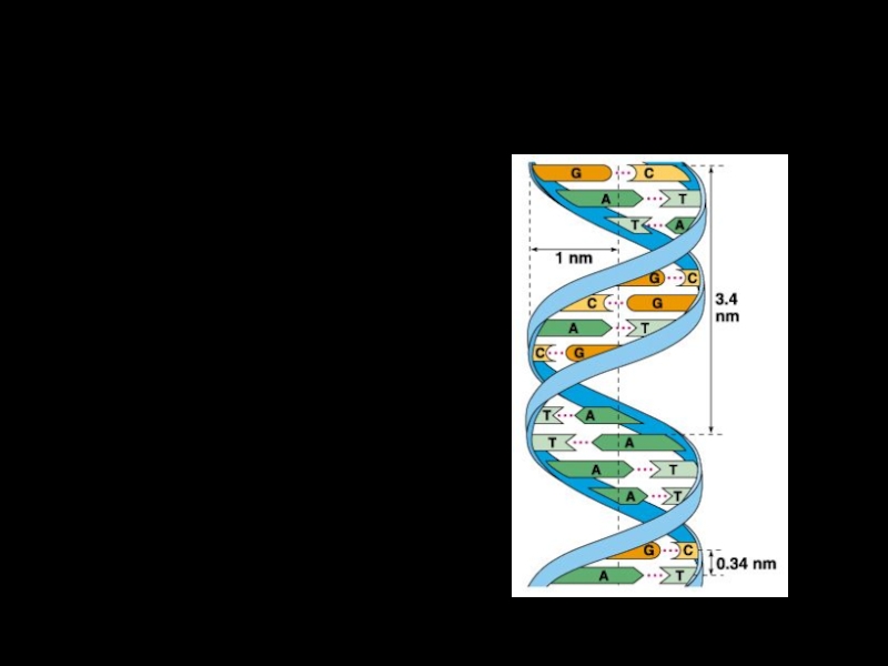 вокруг общей оси и образуют правозакрученные объемные спирали по 10 пар оснований в каждом витке.