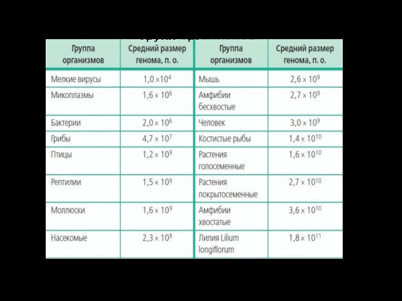 Слайд 28Средний размер гаплоидного генома у некоторых групп организмов