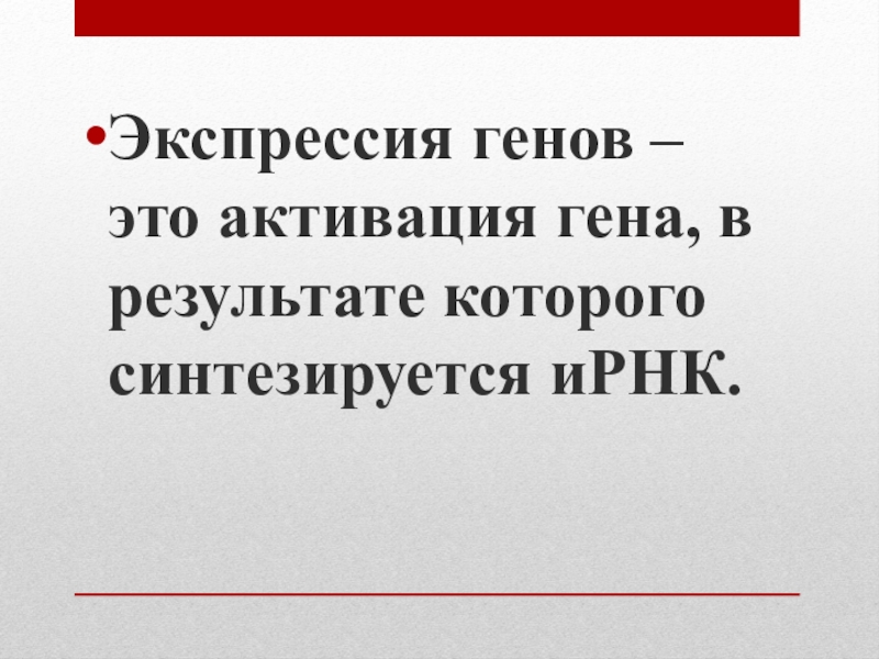 Слайд 6Экспрессия генов – это активация гена, в результате которого синтезируется иРНК.