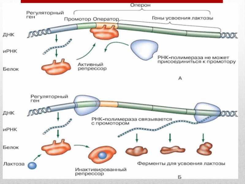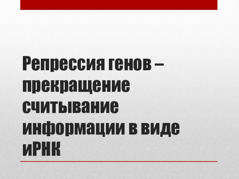 Слайд 7Репрессия генов – прекращение считывание информации в виде иРНК