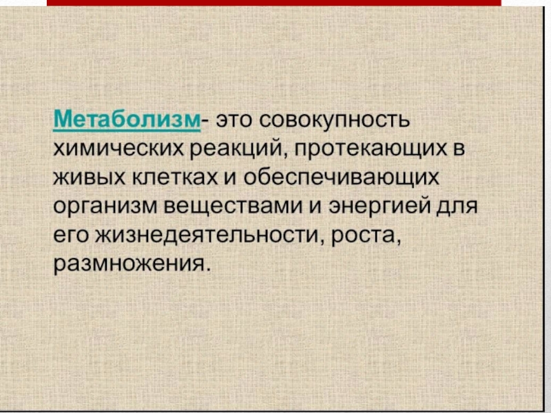МетаболизмХаннанова Гульназ Минзакировна,учитель биологии МБОУ «Гимназия №155» г.Казани