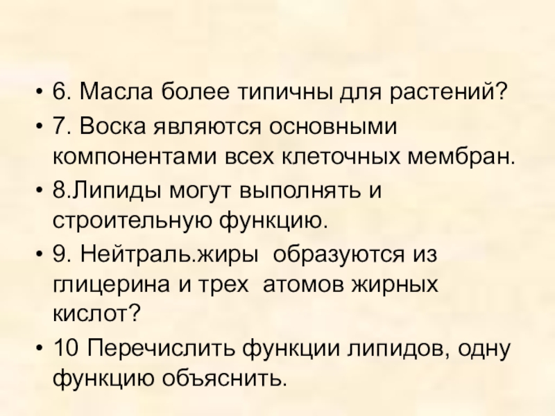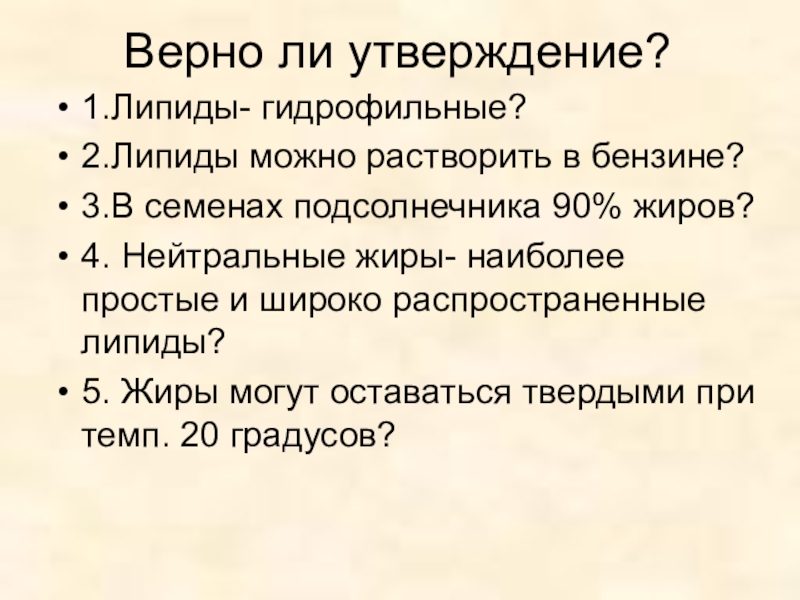 5. Жиры могут оставаться твердыми при темп. 20 градусов?