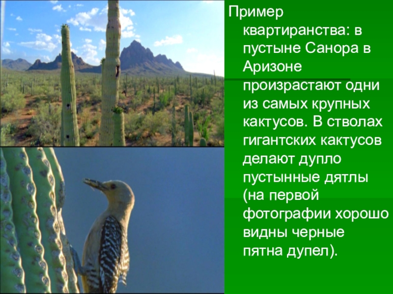 Слайд 11Пример квартиранства: в пустыне Санора в Аризоне произрастают одни из самых