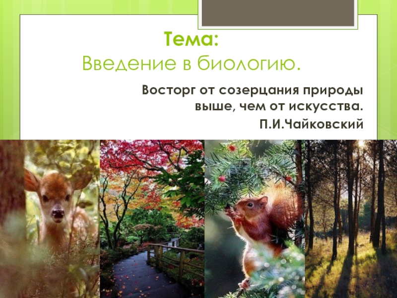 Тема:  Введение в биологию.Восторг от созерцания природы выше, чем от искусства.П.И.Чайковский